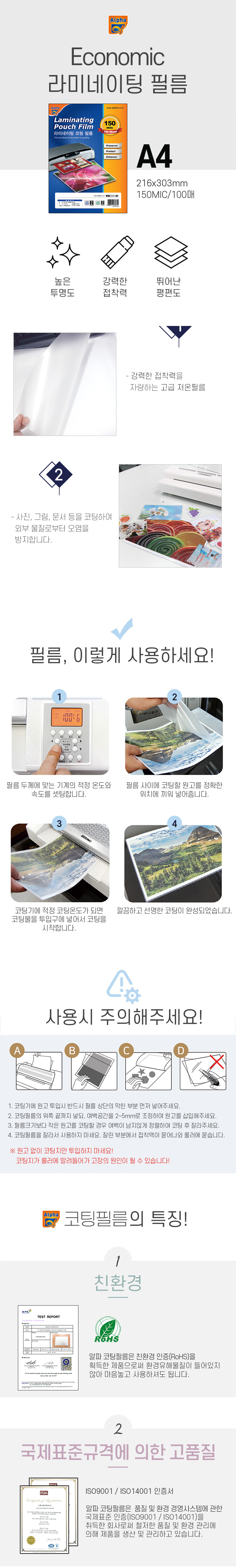 코팅필름/Economic 150mic/A4/100매/216*303mm/1입
